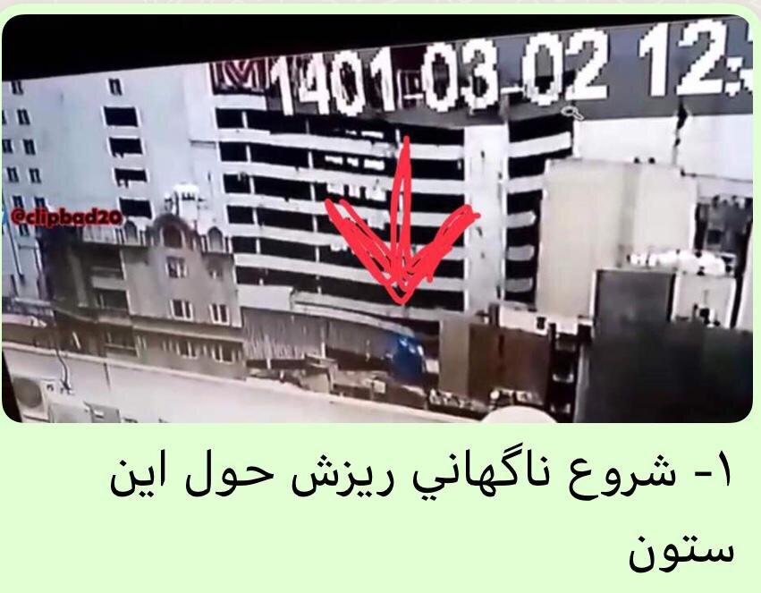 ۲- اضافه طبقات بصورتی که در خبر بیان شده است، کاملا غیر منطقی، غیر اصولی و غیر فنی بوده و بدون شک آستانه تحمل اعضای سازه ای را ار حد و توان ضرایب اطمینان مصالح و حتی فرمولهای طراحی اعضا خیلی بالاتر برده و اگر چنین ریزشی قبل از اتمام کار رخ نمی داد بدون شک شرایط خیلی اسفناک تری در زمان سرویس رخ می داد ؟ باید بررسی شود که آیا مقاوم سازی سازه موجود (۶طبقه) انجام و مهمتر از همه درست انجام شده است یا نه و توسط چه کسانی، متاسفانه امروزه همه ادعای مقاوم ساز بودن دارند با یک دستور العمل بهسازی قلابی !؟ آنچه مسلم است تقویت اعضای سازه برای شکل پذیری و مقاومت بالاتر بصورت درست انجام نشده است که چنین ریزشی قبل از اتمام پروژه رخ داده است.