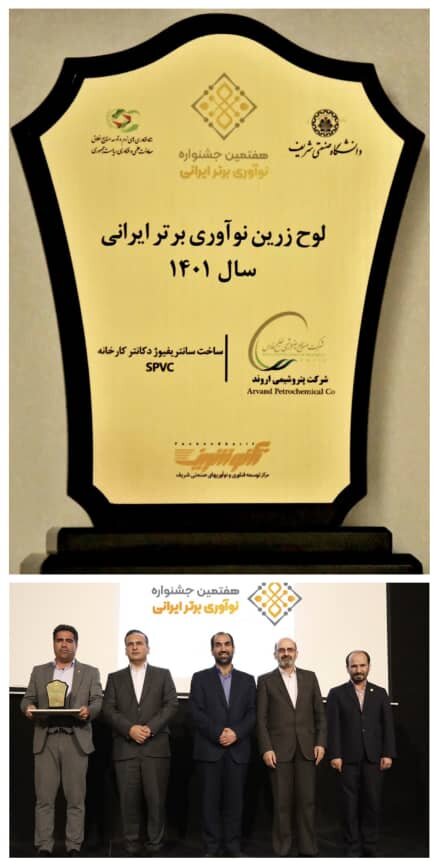 در آئین اختتامیه این جشنواره ملی که پس از انجام ممیزیها به معرفی شرکتها و محصولات برتر در حوزه نوآوریهای ایرانی اختصاص داشت، لوح زرین نوآوری برتر به پاس تلاشهای شرکت پتروشیمی اروند در بی اثر کردن تحریمها و ساخت تجهیزات حساس با توان متخصصین داخلی اختصاص یافت.