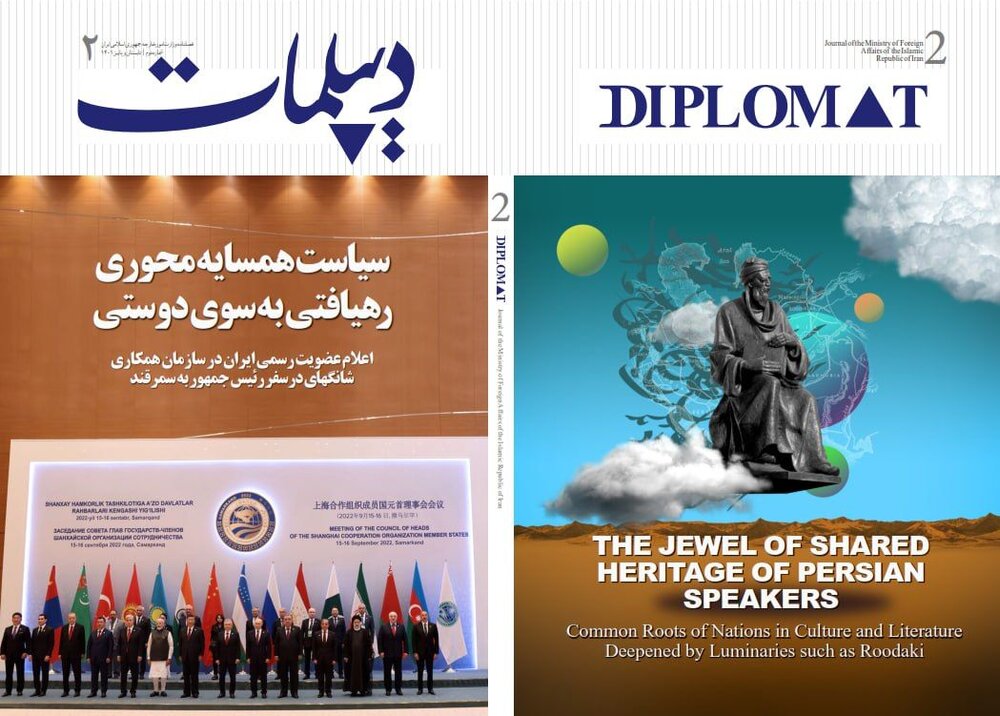 عنوان روی جلد فارسی این شماره مجله «سیاست همسایه محوری؛ رهیافتی به سوی دوستی … اعلام عضویت رسمی ایران در سازمان همکاری شانگهای» در سفر رئیس جمهور به سمرقند» و عنوان روی جلد انگلیسی «زبان فارسی میراث مشترک و رشته پیوند فارسی زبانان» می باشد. مخاطب اصلی فصلنامه «دیپلمات» جامعه دیپلماتیک و نیز کنشگران و فعالان حوزه روابط بینالملل است و در هر نسخه علاوه بر معرفی اماکن تاریخی، فرهنگ، هنر و آداب و رسوم ایرانی، تحولات حوزه سیاست خارجی با تمرکز ویژه بر یک «پرونده ویژه» به رشته تحریر در می آید که در شماره دوم نگاه ویژه به کشور تاجیکستان و روابط جمهوری اسلامی ایران با این کشور اختصاص یافته است.