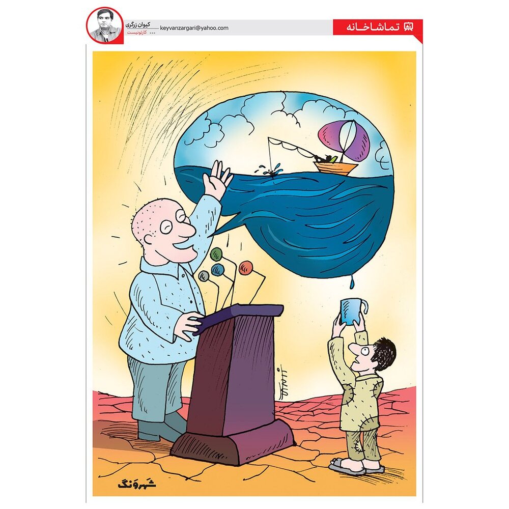 بی آبی و خشکسالی در مناطق جنوبی کشور و شعارها و وعدههای مسئولان در این زمینه، سوژه انتشار کارتونی از کیوان زرگری در شهرونگ شد.