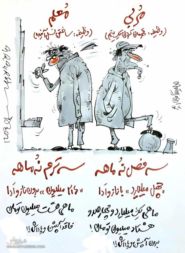دستمزد نجومی مربیان فوتبال و مقایسه آن با حقوق ناچیز معلمان و حواشی تصویب بودجه رتبهبندی فرهنگیان سوژه کارتونی از محمدرضا میرشاهولد شد.