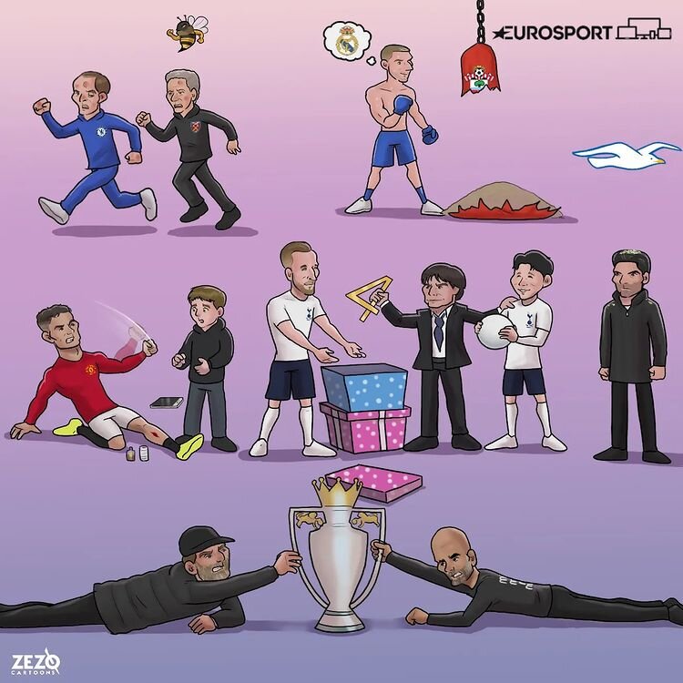یورو اسپرت با انتشار کارتونی در صفحه اینستاگرام خود، به نتایج دیدارهای تیمهای لیگ جزیره در این هفته و ادامه رقابت لیورپول و منچسترسیتی برای کسب عنوان قهرمانی پرداخت.