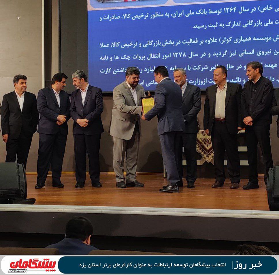 پیشگامان توسعه ارتباطات با توجه به فعالیت در مسیر توسعه و رشد اشتغال کشور و حفظ سرمایه های ملی و تربیت نیروی انسانی متخصص، از سوی سازمان تامین اجتماعی کل کشور به عنوان « کارفرمای برتر استان یزد » انتخاب شد.
