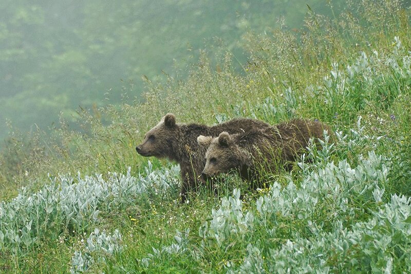 در این تصاویری لحظه ای بود که مادر تصمیم میگیره توله ها را احتمالا برای همیشه از خودش جدا کند تا مستقل شوند. هربار با نزدیک شدن توله ها به این جفت شاهد این بودیم که خرس ماده با عصبانیت و رفتار عجیب به سمت توله ها میره و اجازه نمیده به خرس نر نزدیک شوند. این تصاویر را حامد تیزرویان به تصویر کشیده است.