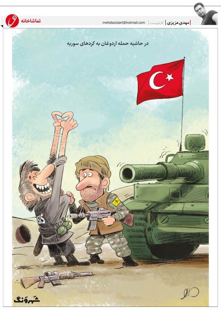 حمله ارتش ترکیه به کُردهای سوریه به دستور رجب طیب اردوغان که با واکنشهای بینالمللی همراه بوده، سوژه کارتونی از مهدی عزیزی در شهرونگ شد.