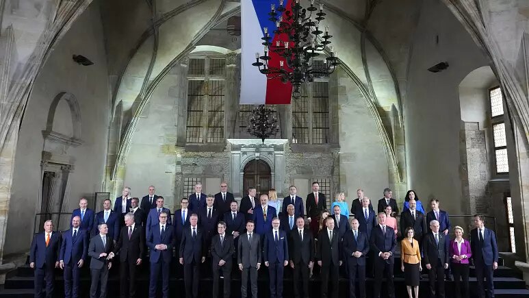 دنیس شمیهال، نخست وزیر اوکراین برای شرکت در این اجلاس در پراگ حاضر شد و ولودیمیر زلنسکی، رئیس جمهوری اوکراین از طریق ارتباط ویدیویی در این نشست شرکت کرد. آقای زلنسکی گفت: «هیچ نماینده‌ای از روسیه بین ما حاضر نیست. این کشور اگرچه از نظر جغرافیایی داخل اروپا به نظر می‌آید اما از نقطه نظر ارزش‌ها و رفتارش ضد اروپایی ترین دولت دنیاست. ما اکنون در موضع قدرت هستیم تا تمام قدرت‌های اروپایی را برای پایان دادن به این جنگ و تضمین صلح بلند مدت هدایت کنیم. برای اوکراین، برای اروپا، برای دنیا.»