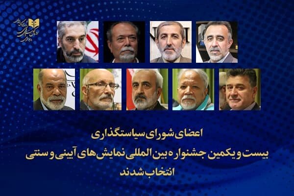 به نقل از روابط‌عمومی اداره‌کل هنرهای نمایشی، محمود سالاری، معاون امور هنری وزارت فرهنگ و ارشاد اسلامی و رییس شورای سیاست‌گذاری بیست‌ویکمین جشنواره بین‌المللی نمایش‌های آیینی و سنتی روز گذشته یکشنبه، چهاردهم اسفند طی احکام جداگانه‌ای اعضای شورای سیاست‌گذاری این رویداد هنری را معرفی و منصوب کرد.