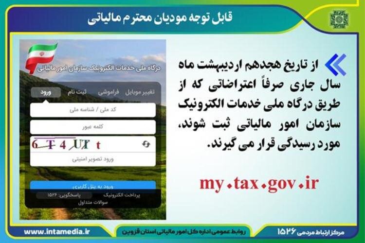 از قزوین؛ عزیزاله عباس پور، مدیرکل امور مالیاتی استان قزوین ضمن اشاره به رویکرد جدید سازمان جهت هوشمندسازی مالیاتی، اظهار کرد: در اجرای مفاد دستورالعمل اجرایی موضوع تبصره1 ماده 238اصلاحی قانون مالیاتهای مستقیم، مودیان محترم مالیاتی اعترضات خود به برگ تشخیص مالیات یا برگ اعلام نتیجه رسیدگی یا برگ مطالبه-استرداد را باید از طریق درگاه ملی خدمات الکترونیک سازمان امور مالیاتی به نشانی www.my.tax.gov.ir ثبت کنند تا بتوانند از امکان رسیدگی مجدد برخوردار شوند.