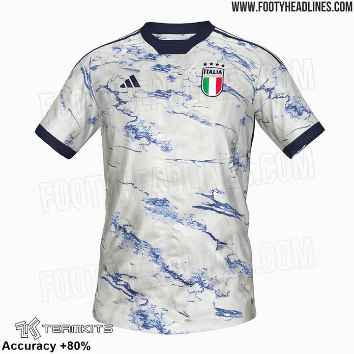 ، لباس دوم جدید ایتالیا در زمینه عمدتا سفید و احتمالا همراه با یک افکت سنگ مرمر به رنگ لاجوردی با رگه های بسیار جزئی طلایی رنگ در بین آنها ارائه خواهد شد. یقه، سه خط روی شانه، نور لبه آستین و همچنین لوگوی آدیداس احتمالا به رنگ سرمه ای خواهد بود.