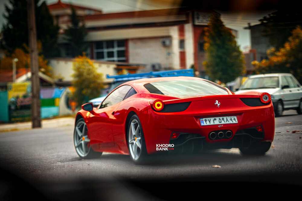 ، طراحی جانبی خودرو کاملاً یک سوپر اسپرت موتور وسط با ارتفاع پایین را نشان میدهد که به خطوطی هنرمندانه سعی شده تا طرحی خشک و مانند خودروهای پیست نداشته باشد. کالیپرهای قرمز رینگ که روی دستکهای ترمز بزرگ ۴۵۸ ایتالیا جای گرفتهاند نیز به شما یادآوری میکنند نگرانی از بابت مهار کردن این اسب وحشی نداشته باشید. در عقب فراری برخلاف مدل F۴۳۰ و F۳۵۵ که از چراغهای دوبل استفاده میکردند، از چراغهای تکی استفاده شده است. در کنار هر یک هر چراغهای عقب یک مجرای هوا به شکل افقی قرار دارد که بر جذابیت طرح افزودهاند. اما جالبترین بخش عقب را باید سه خروجی اگزوز در وسط دانست که آن را متمایز از سایر فراریهای هم عصر خود میکند.