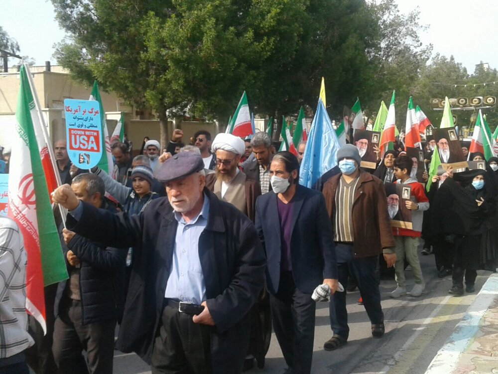 ما شرکت کنندگان در این تظاهرات و راهپیمایی مردمی با فریاد رسا و ندای ملکوتی «الله اکبر خامنهای رهبر» اعلام میداریم: