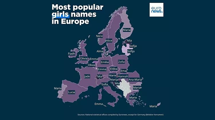 بخش فرهنگی یورونیوز تلاش کرده است تا با استفاده از اطلاعات رسمی و منتشره توسط موسسات آماری، پرطرفدارترین نامها در سال ۲۰۲۱ در اتحادیه اروپا و در هر کشور را نشان دهد.