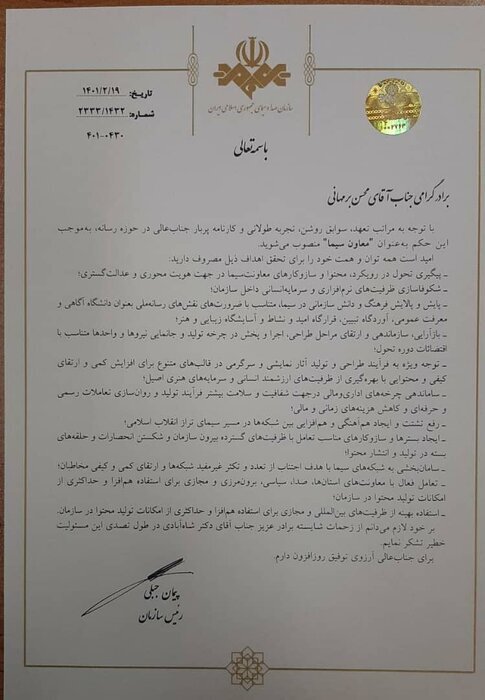 محسن برمهانی که پیش از این به عنوان مدیرکل تأمین و رسانه بینالملل صداوسیما فعالیت میکرد، با حکم پیمان جبلی، جایگزین حمید شاهآبادی در معاونت سیما شد.
