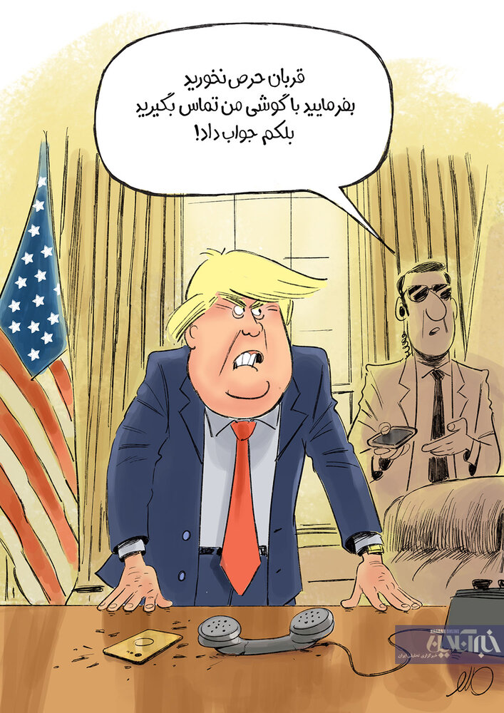 نشریه نیویورکر در مطلبی عنوان کرده که علیرغم تحرکات ماکرون برای برقراری تماس تلفنی سه‌جانبه روسای جمهور فرانسه، ایران و آمریکا در نیویورک، روحانی جواب تماس تلفنی ترامپ را نداده است. مهدی عزیزی با انتشار کارتونی در خبرآنلاین، به این موضوع پرداخت.