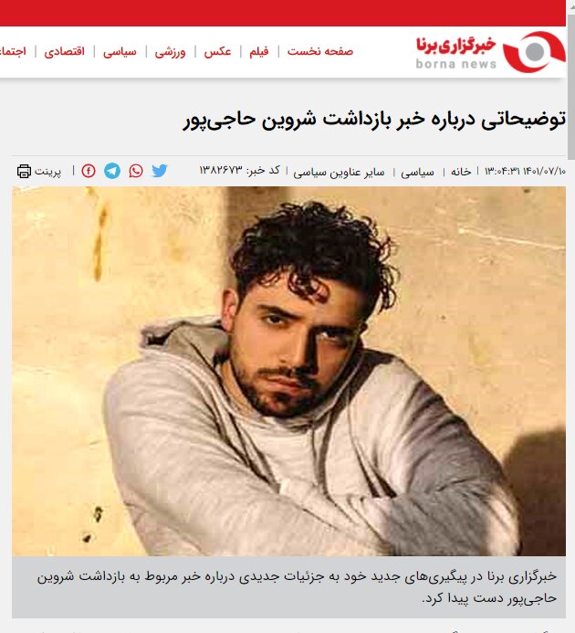 روز گذشته خبرگزاری برنا در خبری اعلام کرد که شروین حاجیپور بازداشت نشده و صرفاً برای تذکر درمورد تشویق وی به اغتشاش احضار شده بود.